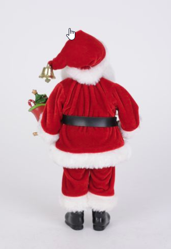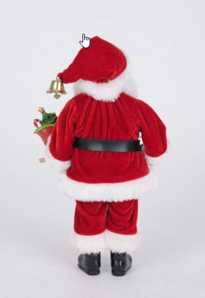 Celebrate the magic of Christmas with this delightful Reindeer Sled Santa Figurine. Santa stands proudly in his classic red velvet suit trimmed in soft white faux fur, complete with a black belt and gold buckle. A festive golden bell adorns the tip of his iconic hat, ready to jingle all the way into your holiday décor. In one hand, Santa holds an adorable mini reindeer by a golden rope, while the other hand carries a toy-filled sleigh brimming with presents, candy canes, and Christmas cheer. His warm expression, wire-rimmed glasses, and jolly stance add a traditional charm perfect for any mantelpiece or holiday display. Bring a joyful spirit to your home this season with this timeless Santa figurine that captures the wonder and warmth of the holidays.