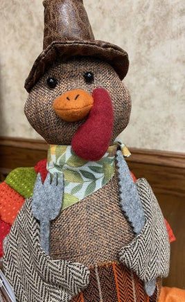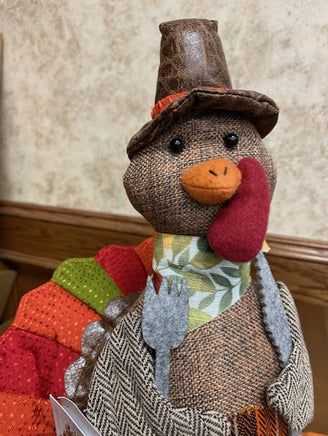 Add a festive and cozy touch to your home with this charming plush turkey decoration, perfect for Thanksgiving and the fall season. This adorable figurine is crafted with a variety of autumnal-colored fabrics, featuring a patchwork-style body, a festive scarf, and a cute hat. It's a wonderful accent for your mantel, shelf, entryway table, or as a centerpiece for your holiday gatherings. The stuffed design makes it lightweight yet durable, ideal for decorating year after year.