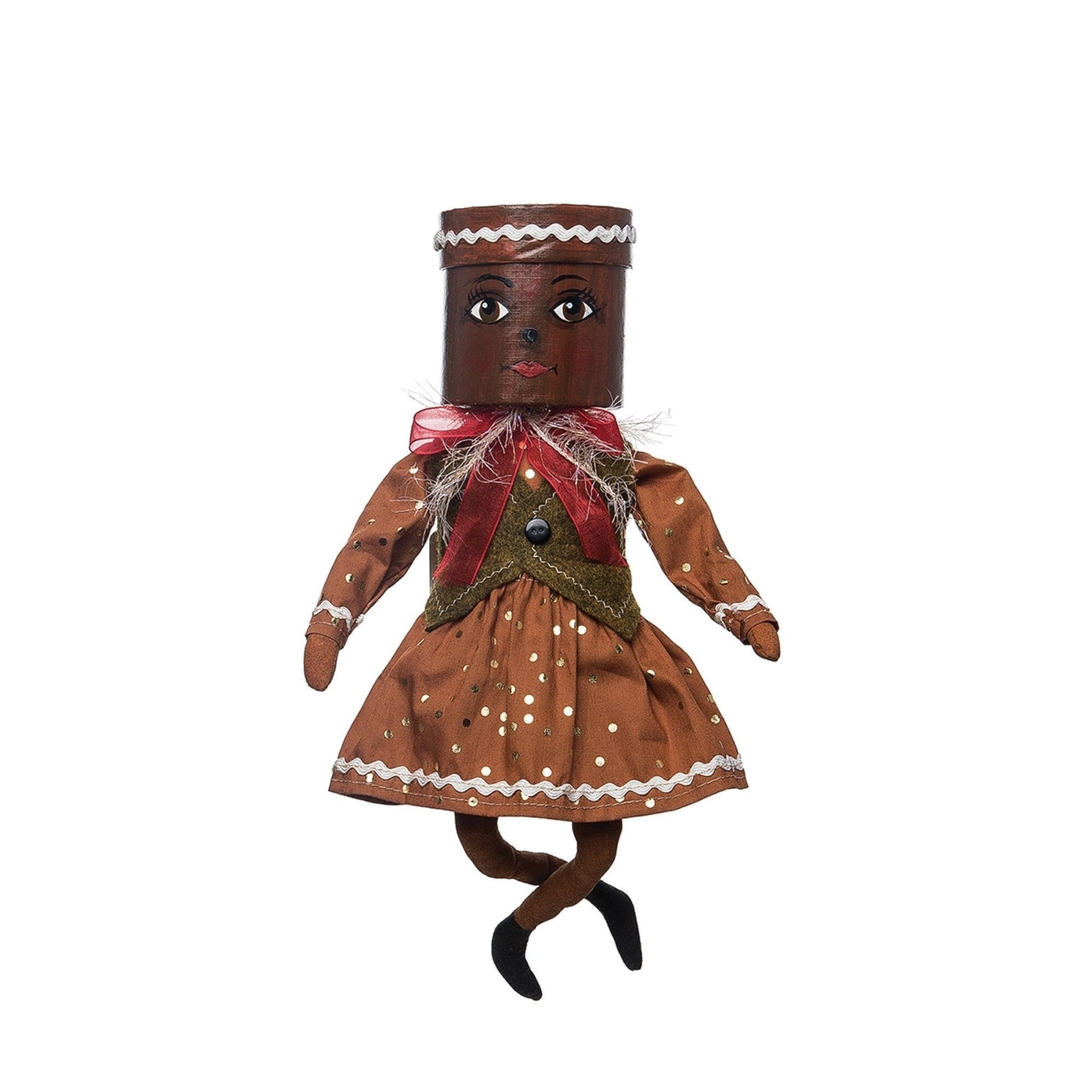 Gretta Head Container Figure is perfectly sized to sit proudly on a shelf, surrounded by other box head dolls or as part of a charming group display on a chair. Whether she becomes a centerpiece or a charming accent in your Christmas decor, Gretta is sure to capture the hearts of all who see her.